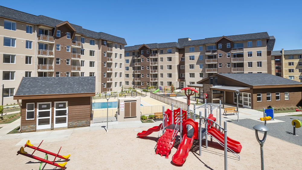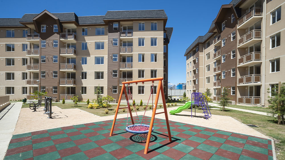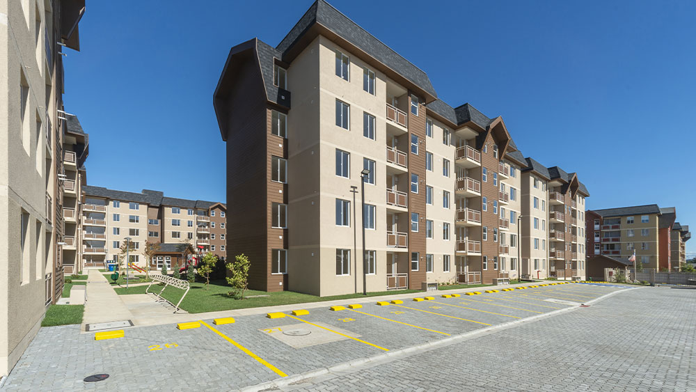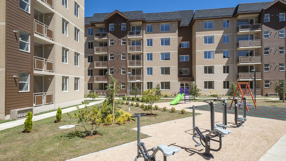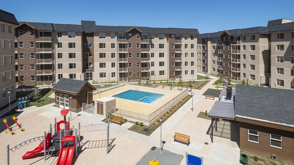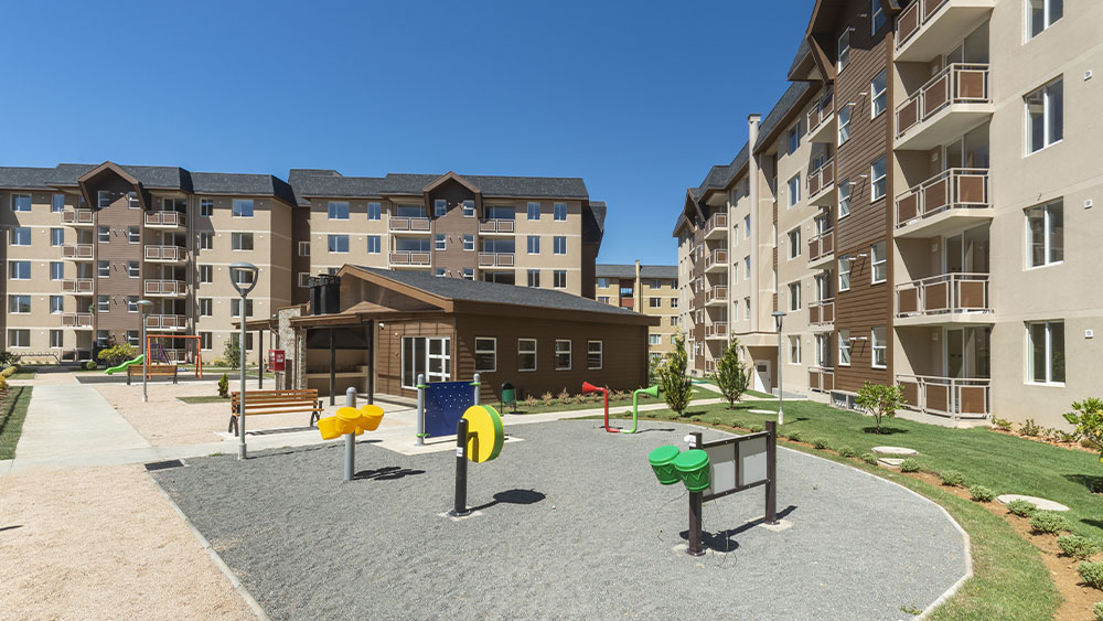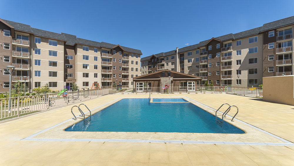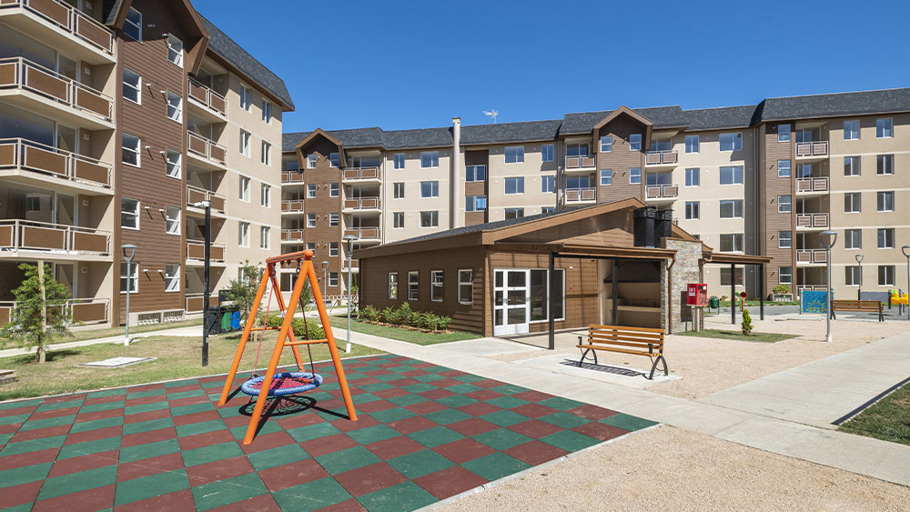 Cuenta con 4 torres de 5 pisos cada una, distribuidas de tal forma de dejar un gran área verde central, la cual contiene, equipamiento de alto estándar, juegos, maquinas de ejercicio 2 salones de eventos y una piscina. Disfruta en familia un proyecto de gran calidad, en un ambiente que te encantará.
