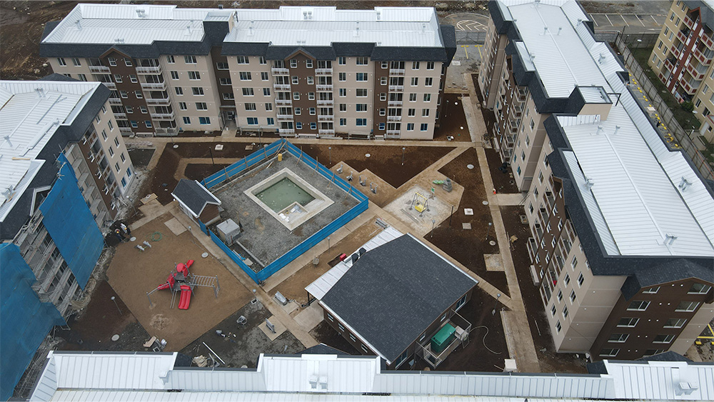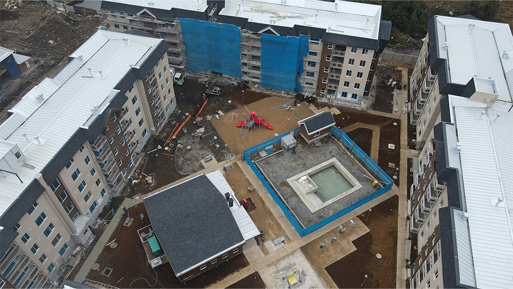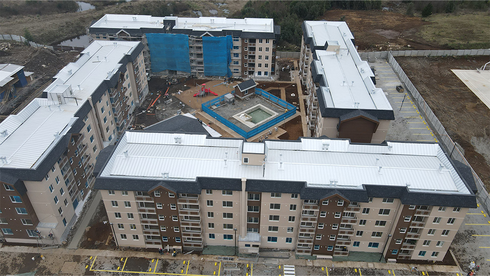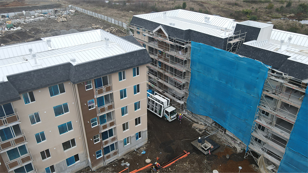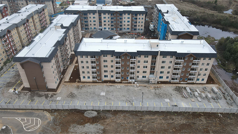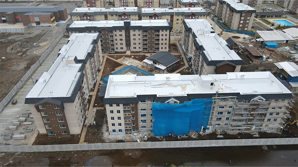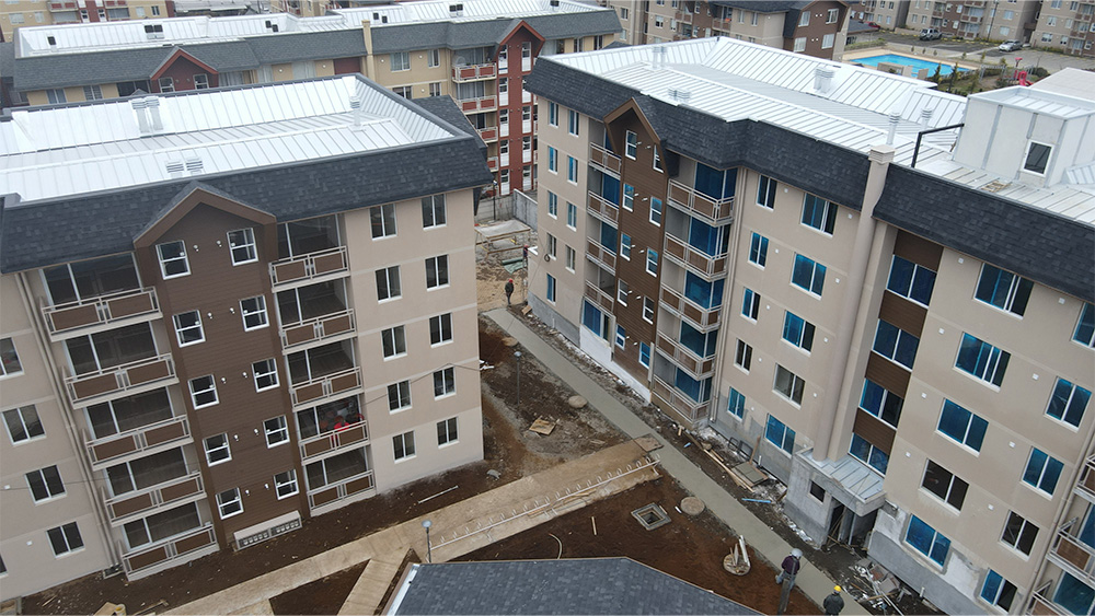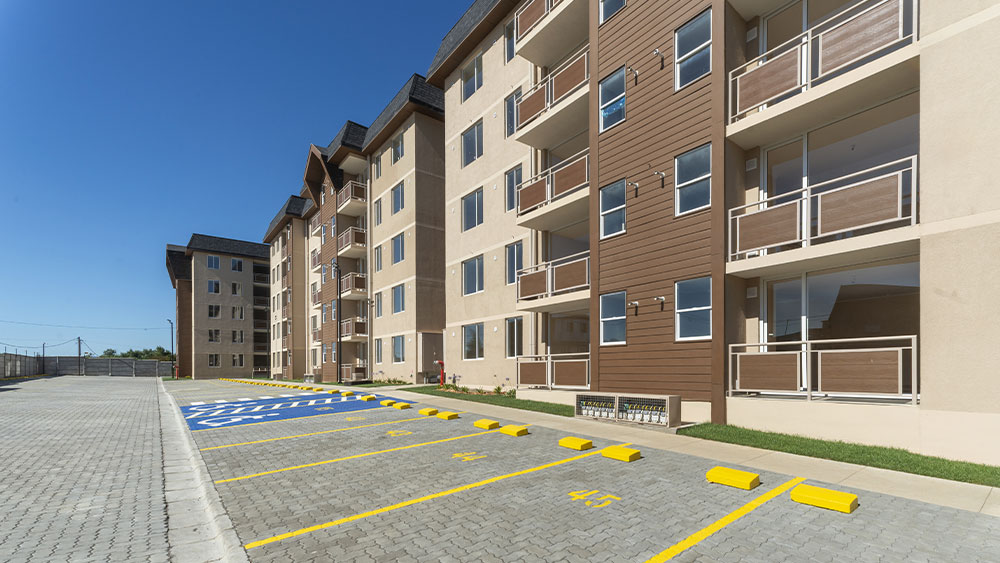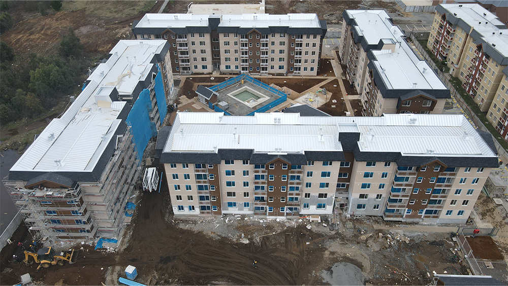 Cuenta con 4 torres de 5 pisos cada una, distribuidas de tal forma de dejar un gran área verde central, la cual contiene, equipamiento de alto estándar, juegos, maquinas de ejercicio 2 salones de eventos y una piscina. Disfruta en familia un proyecto de gran calidad, en un ambiente que te encantará.